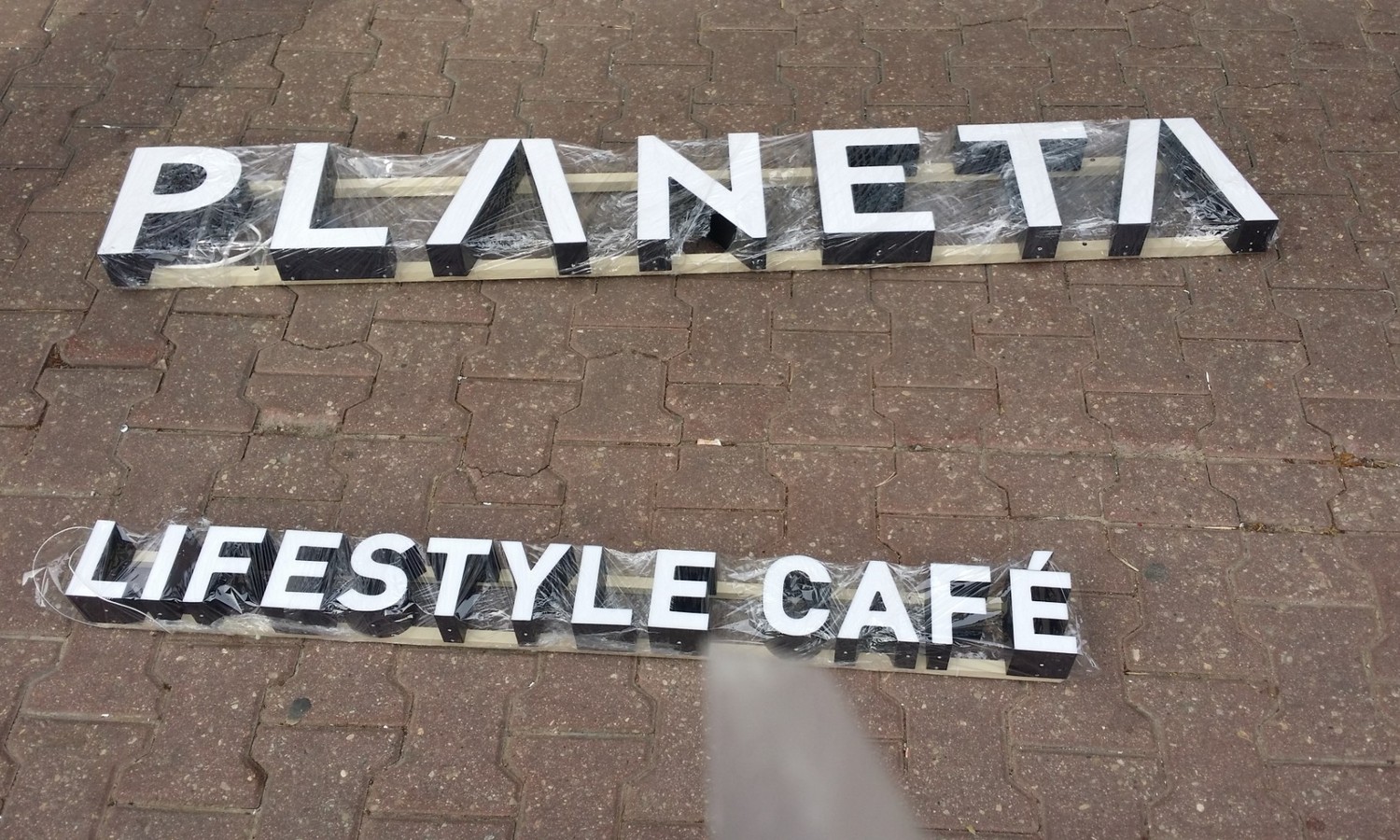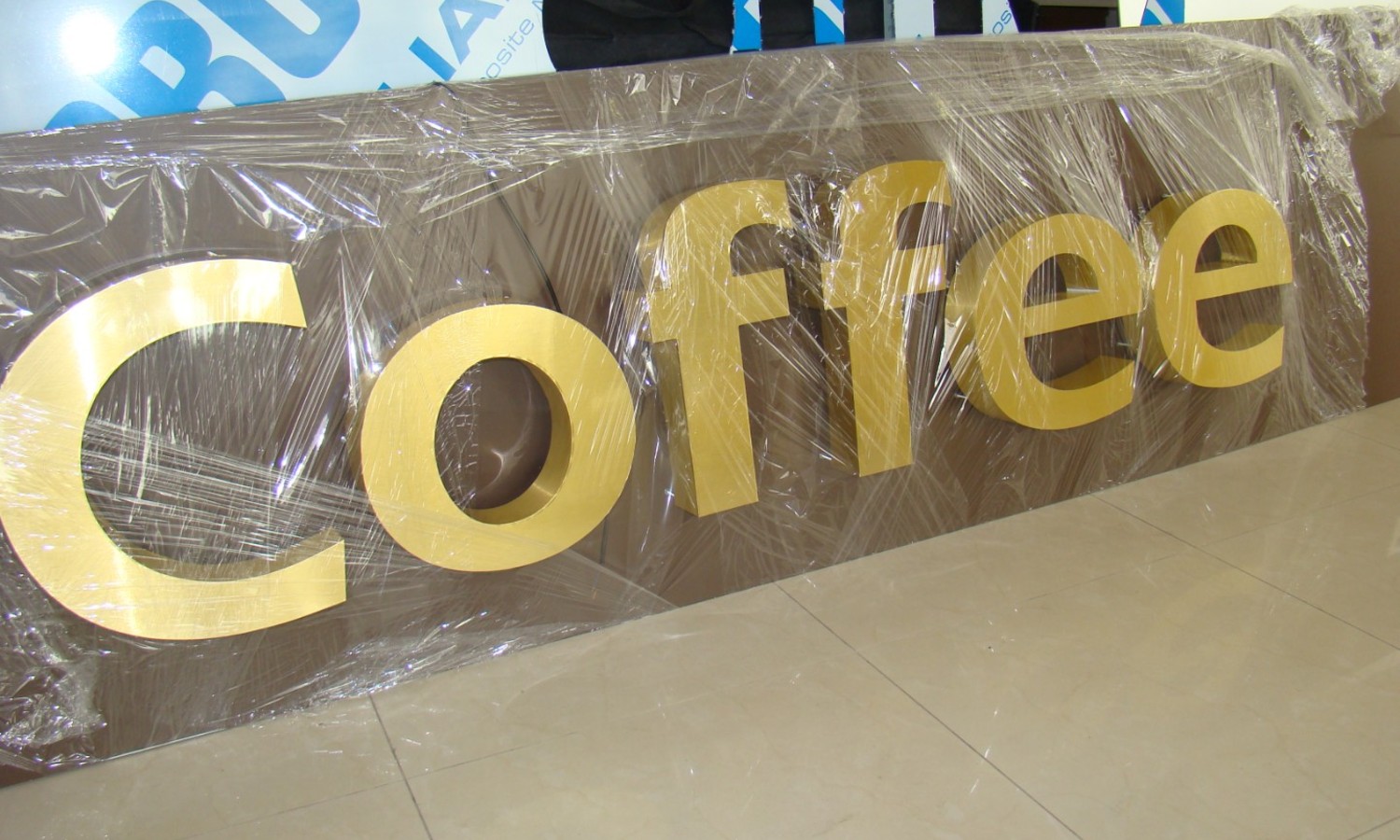 Буквы изготавливаются из алюминия, композита, пластика. Для изготовления лица используем органическое стекло, композитные материалы с различной фактурой (под шлифованную нержавейку, медь, латунь) либо настоящие металлы (полированная или шлифованная нержавейки, медь, латунь, бронза, алюминий