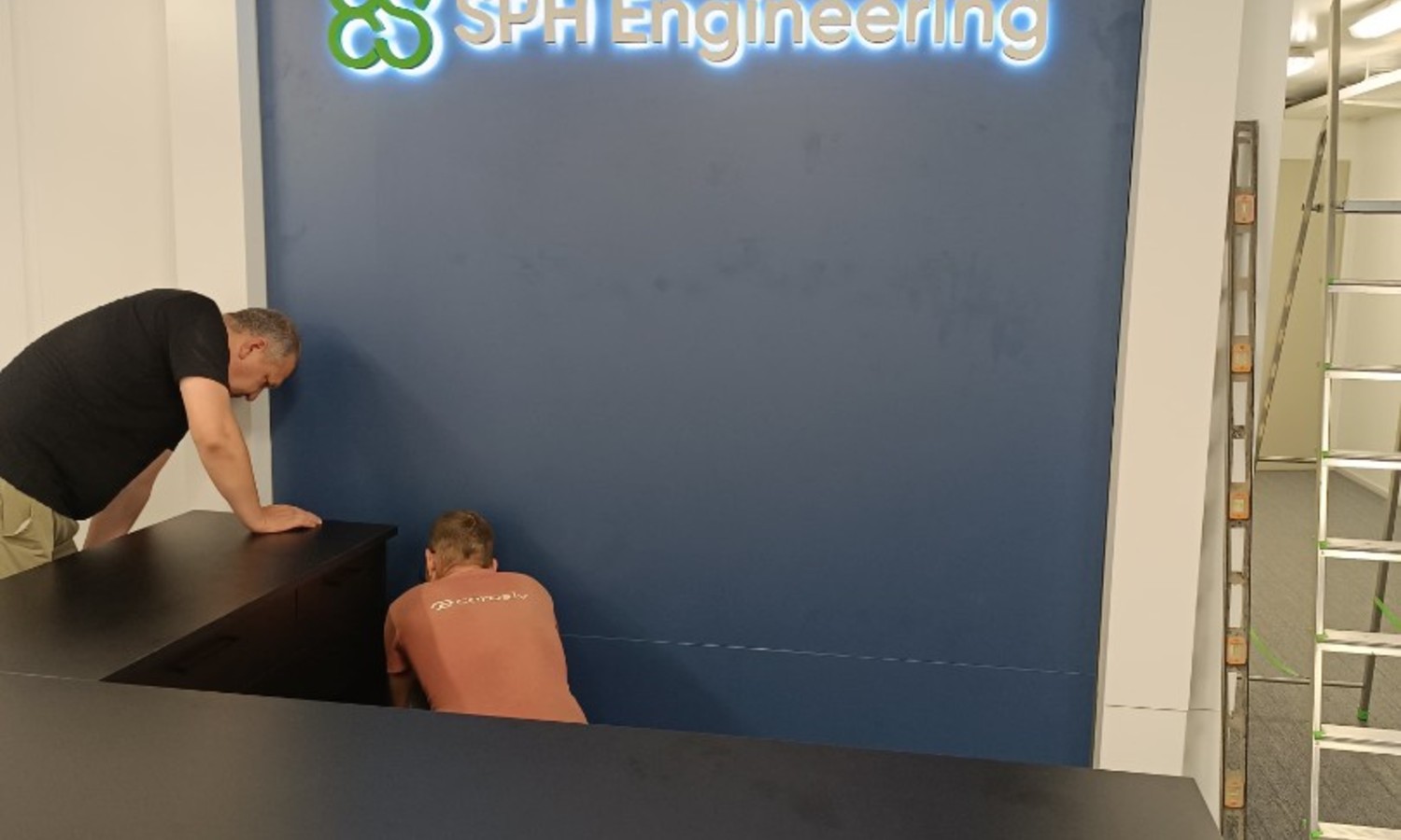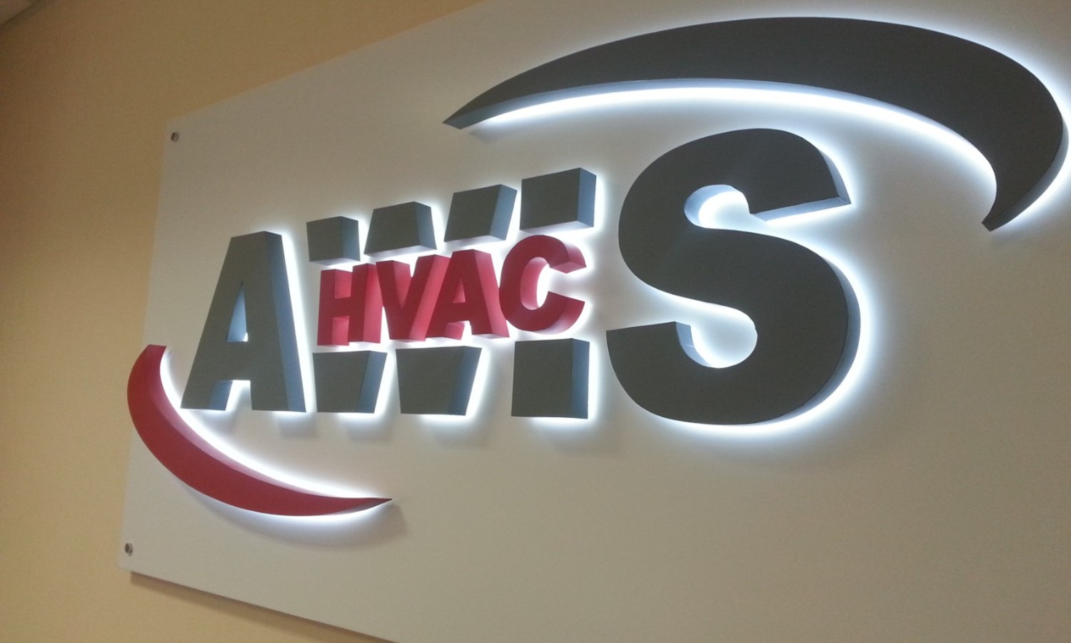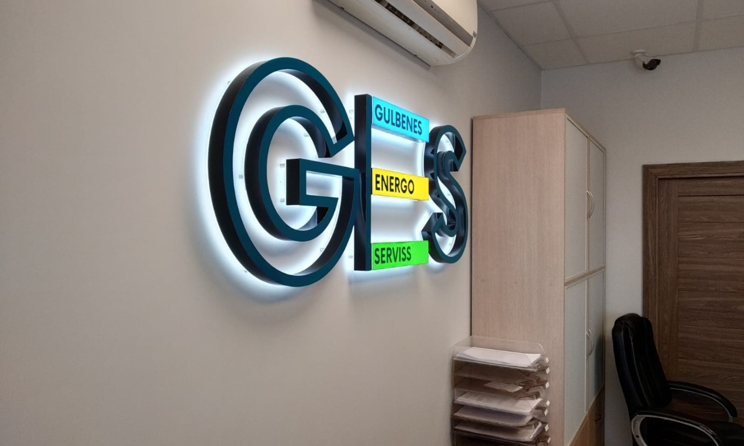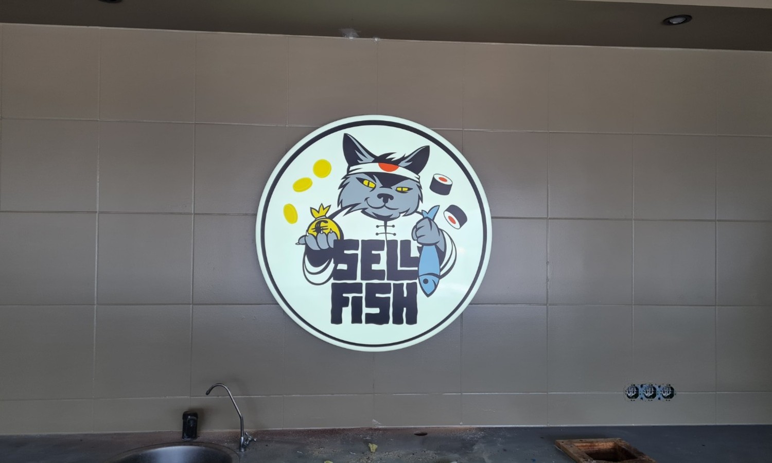 Лучший момент установки и подключения логотипа во время ремонта помещений - мы монтируем провода и коммутируем их, временно крепим лого. Ваши строители штукатурят, красят стену, затем мы устанавливаем лого на место