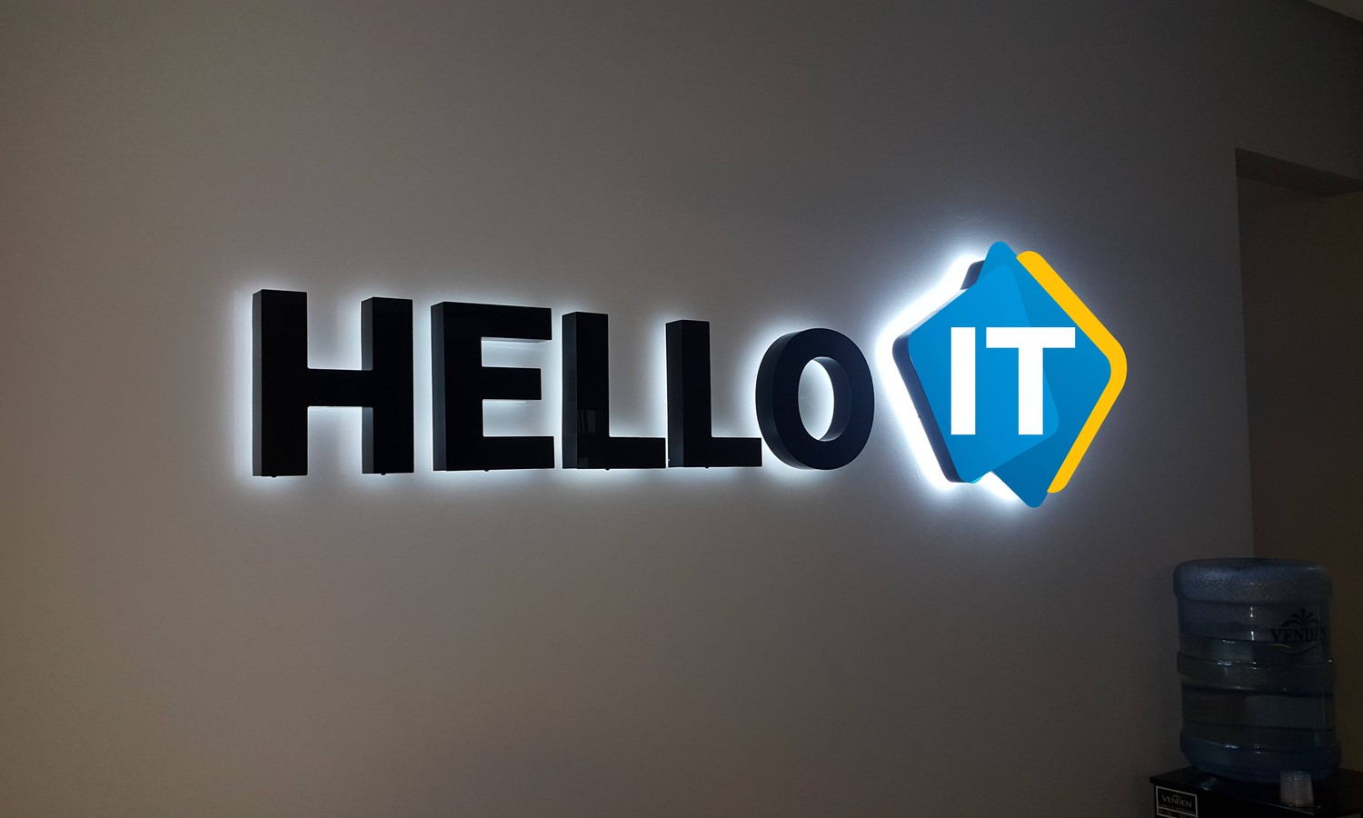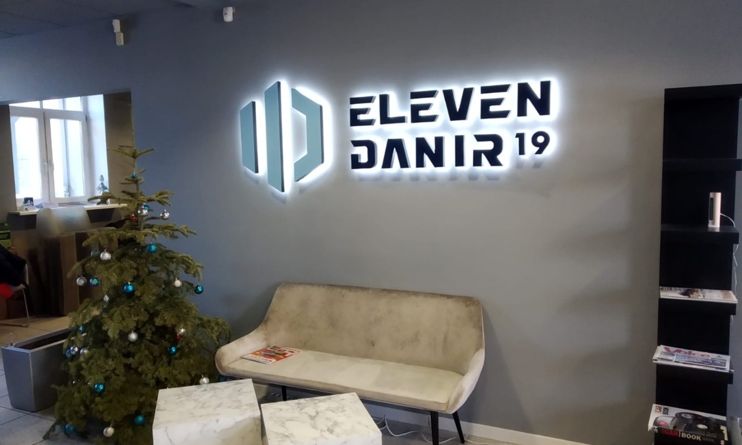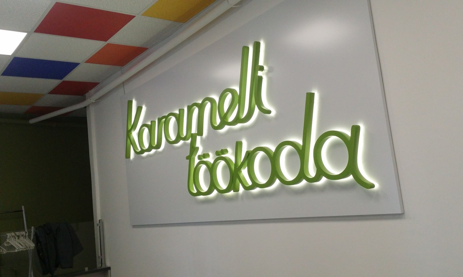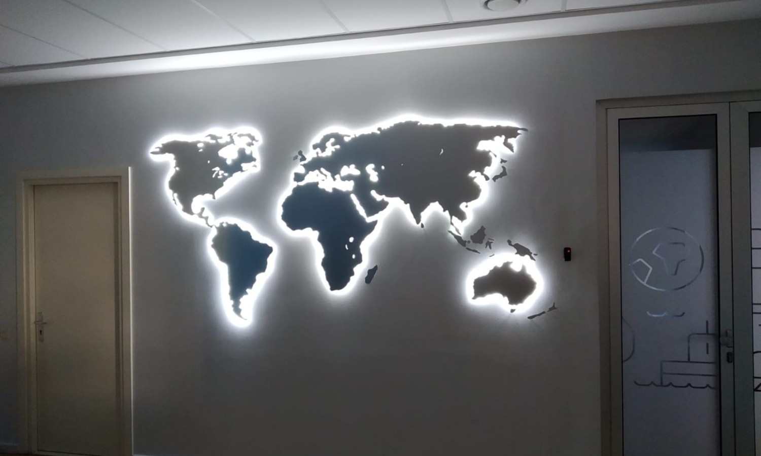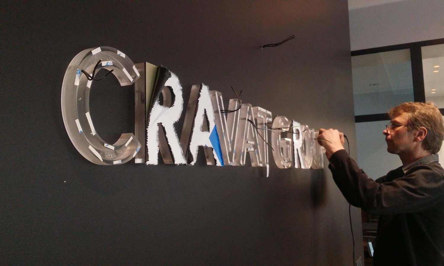 Лучший момент установки и подключения логотипа во время ремонта помещений - мы монтируем провода и коммутируем их, временно крепим лого. Ваши строители штукатурят, красят стену, затем мы устанавливаем лого на место