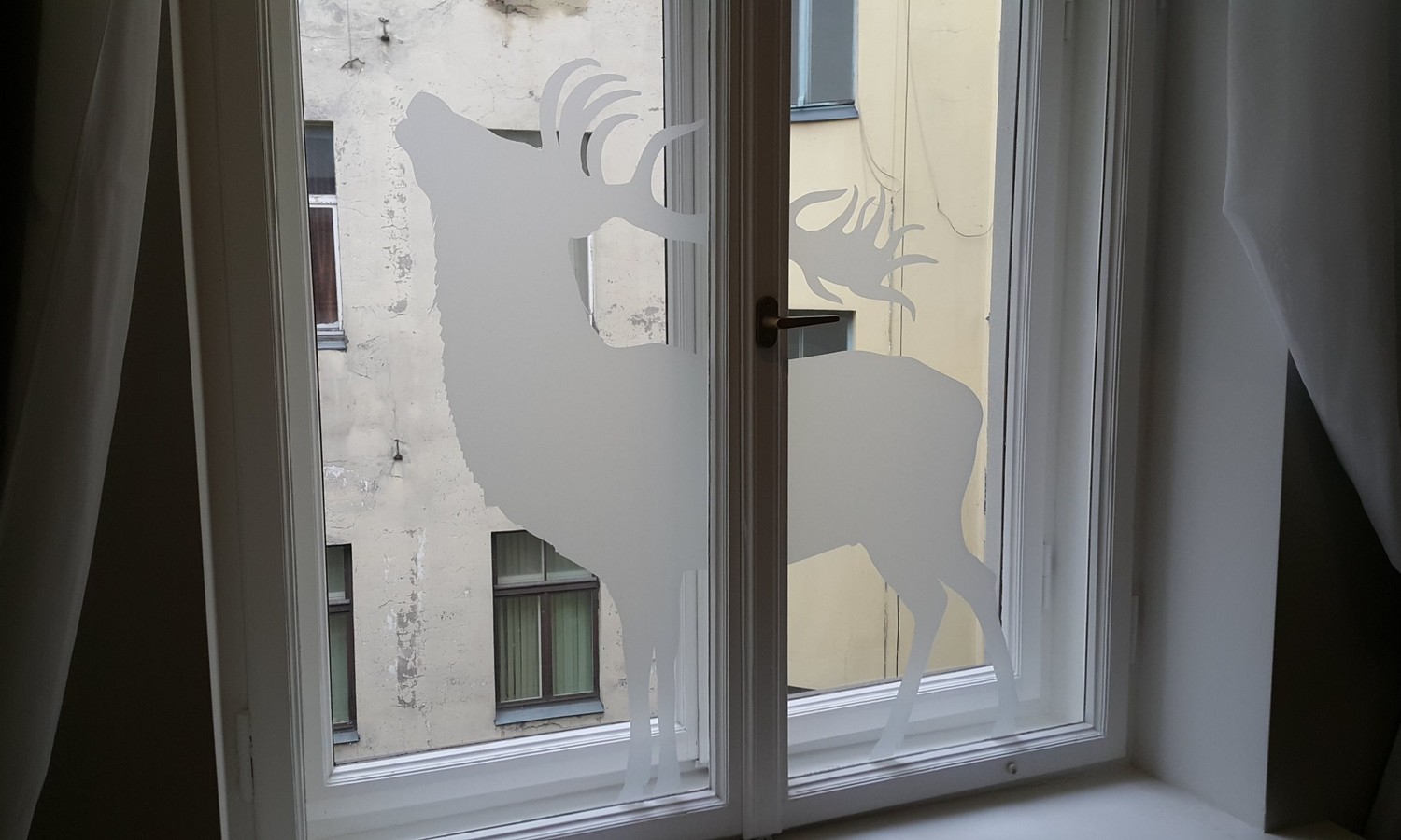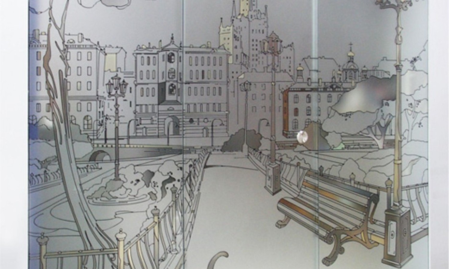Оклейка пескоструйной, витражной или цветными пленками: